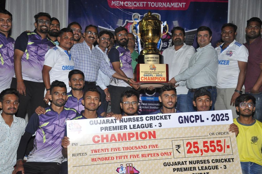 નર્સિંગ સમુદાય માટે રમતગમત અને સામાજિક જાગૃતિ માટે ખજોદના સી.બી.પટેલ ઈન્ટરનેશનલ ક્રિકેટ સ્ટેડિયમ ખાતે આયોજિત ગુજરાત નર્સિંગ ક્રિકેટ પ્રીમિયર લીગ-૩ (GNCP-2025) નું રંગેચંગે સમાપન થયું હતું, ફાઈનલ મેચમાં પારૂલ યુનિવર્સિટી-વડોદરાની ટીમ વિજેતા બની હતી. લિજેન્ડ ઇલેવન વડોદરા રનર્સ અપ રહી હતી. ચેમ્પિયન ટીમને રૂ.૨૫,૫૫૫ પુરસ્કાર અને ટ્રોફી તેમજ રનર્સ અપ ટીમને રૂ.૧૫,૫૫૫ અને ટ્રોફી એનાયત કરાયા હતા.