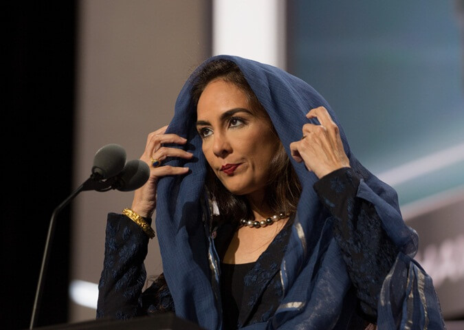 જ્યારે તેણી રિપબ્લિકન રાજકારણમાં સામેલ થઈ, ત્યારે ઘણા લોકોએ તેણી સામે આ અગાઉના નાગરિક અધિકારોના ઇતિહાસનો ઉપયોગ કર્યો, કેટલાક તો તેણીને આતંકવાદી, તાલિબાન પ્રત્યે સહાનુભૂતિ ધરાવનાર અથવા 'તાજમહેલ રાજકુમારી' કહીને તેણીની કારકિર્દીને અટકાવવાનો પ્રયાસ કર્યો, "રેડિટ પર ટ્રુવર્થ999 એ કહ્યું. "તેમણે ચાર વર્ષ પહેલાં સંમેલનમાં આ જ પ્રાર્થના કરી હતી", તેમ બે એરિયાના રહેવાસી હરજિત સભરવાલે જણાવ્યું હતું.