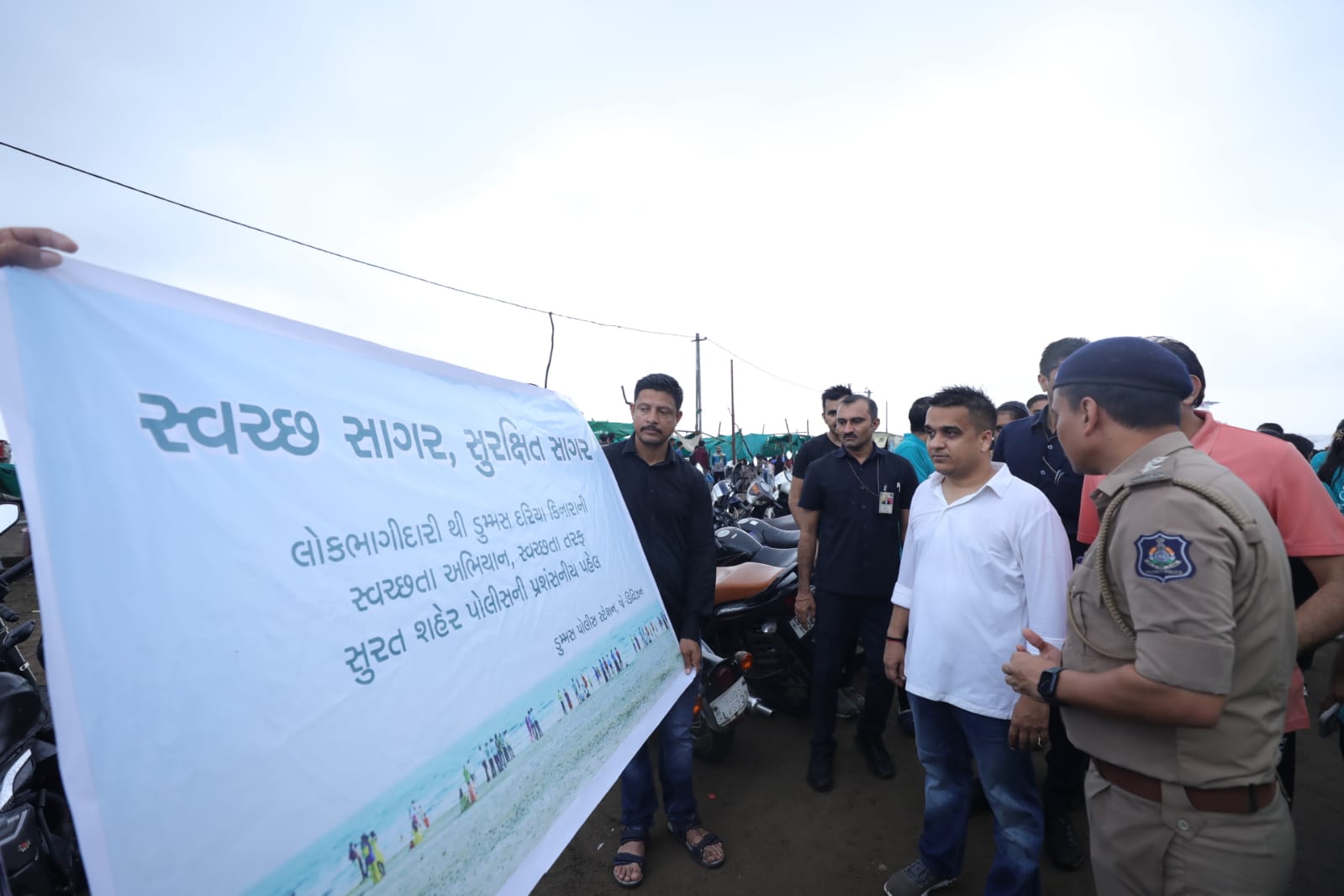 It’s time to Cleanup Dumas Beach ના ધ્યેય સાથે સ્વચ્છ ભારત અભિયાનને વેગ આપવા પ્રોજેક્ટ સુરત ગ્રુપ અને શહેરની વિવિધ એનજીઓ દ્વારા સુરતના ડુમસ બીચ ખાતે આયોજિત સ્વચ્છતા ડ્રાઈવમાં ગૃહરાજ્યમંત્રીશ્રી હર્ષ સંઘવી અને મેયર દક્ષેશભાઈ માવાણી સહભાગી બન્યા હતા. જેમાં સુરતીઓએ બીચ પર રહેલા પ્લાસ્ટિક, બેગ, થેલીઓ, ચંપલ, ગ્લાસ, કાચ, ચમચીઓ, ડીશ, દોરીઓ, પૂજાપા સહિતની વસ્તુઓને એકઠી કરી નિકાલ કર્યો હતો. સૌએ સ્વચ્છ અને સુઘડ સુરતને જાળવી રાખવા અને બીચ ને પ્લાસ્ટિકમુક્ત રાખવાનો સંકલ્પ લીધો હતો.