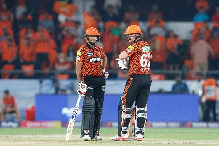અભિષેક શર્મા અને ટ્રેવિસ હેડ / IPLt20.comરાજીવ ગાંધી ઇન્ટરનેશનલ સ્ટેડિયમમાં રમાયેલ મેચમાં હૈદરાબાદે 20 ઓવરમાં 3 વિકેટે 277 રન બનાવ્યા હતા. હૈદરાબાદ તરફથી અભિષેક શર્માએ 23 બોલમાં 63 રન, ટ્રેવિડ હેડે 24 બોલમાં 62 રન અને હેનરિક ક્લાસને 34 બોલમાં 80 રન બનાવ્યા હતા. એડન માર્કરમે 28 બોલમાં 42 રનનું યોગદાન આપ્યું હતું. જેના જવાબમાં રન ચેઝ કરવા ઉતરેલી મુંબઈ ઇન્ડિયન્સની ટિમ 20 ઓવરમાં 5 વિકેટના ભોગે 246 રન બનાવી શકી હતી. હૈદરાબાદ તરફથી પેટ કમિન્સ અને જયદેવ ઉનડકટે 2-2 વિકેટ લીધી હતી.