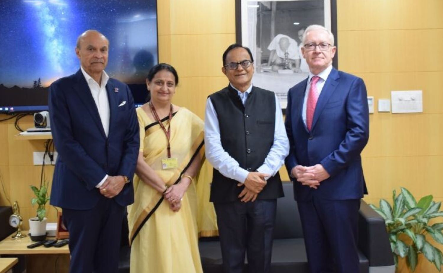 (L-R)Vindi Banga, Chair of Imperial’s Council, Dr Parvinder Maini, Scientific Secretary, Professor Ajay Kumar Sood, Principal Scientific Adviser to the Government of India and President Hugh Brady. / Courtesy photo