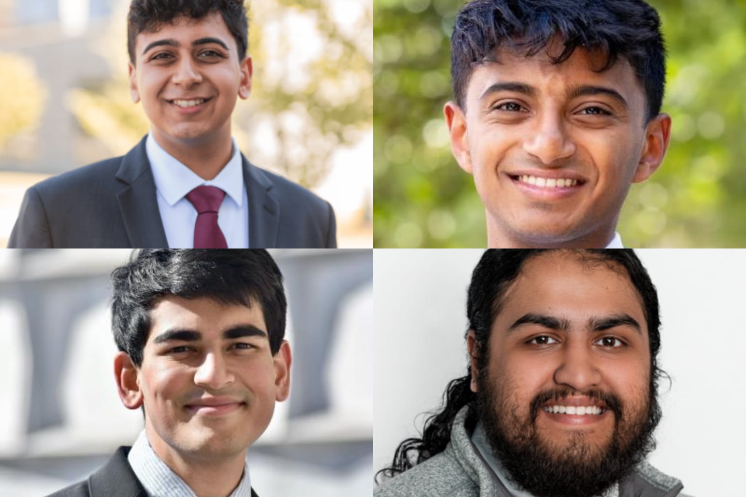 (Top L-R) ધ્રુવક મિરાની, ઓજસ સંઘી (Bottom L-R) ઋષિ શાહ અને હર્ષમન સિહરા. / Truman Scholarship