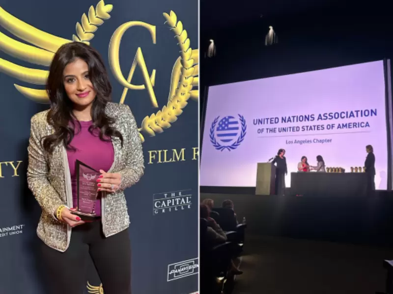 સિટી ઓફ એન્જલ્સ ઇન્ટરનેશનલ ફિલ્મ ફેસ્ટિવલમાં એવોર્ડ (સિટી ઓફ એન્જલ્સ ઇન્ટરનેશનલ ફિલ્મ ફેસ્ટિવલ) સાથે ફિલ્મ નિર્માતા નિવી જસવાલ-વિર્ટજેસ / એવોર્ડ સમારોહ / The Virsa Foundation Inc and JIVINITI Research Program