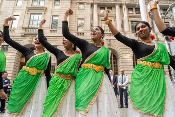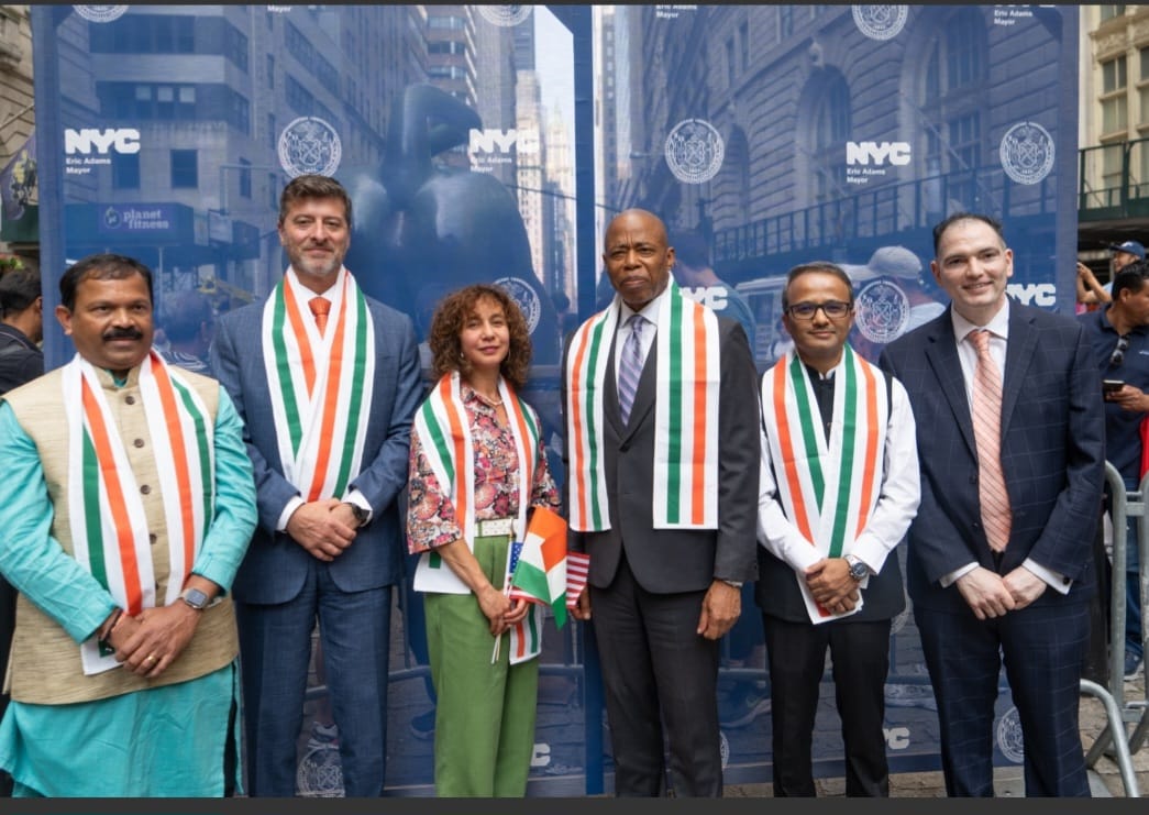 ભારતીય ત્રિરંગાનો રંગ, ભારતનો સમૃદ્ધ સાંસ્કૃતિક વારસો અને અમેરિકા સાથેના મજબૂત દ્વિપક્ષીય સંબંધો સમગ્ર શહેરમાં ગુંજી ઉઠ્યા હતા કારણ કે દેશના 78મા સ્વતંત્રતા દિવસની ઉજવણી અહીં દેશભક્તિની ઉજવણી સાથે કરવામાં આવી હતી. વોલ સ્ટ્રીટમાં આયોજિત ધ્વજવંદન સમારોહમાં, ન્યુ યોર્ક સિટીના મેયર એરિક એડમ્સે ન્યુ યોર્ક સિટીને "અમેરિકાની નવી દિલ્હી" તરીકે વર્ણવ્યું હતું. તેમણે મહાત્મા ગાંધીને શ્રદ્ધાંજલિ અર્પણ કરતી વખતે પોતાની ભારત યાત્રાને યાદ કરતાં કહ્યું હતું કે, "તે પદચિહ્નો પર આગળ વધવાની આપણી જવાબદારી અને જવાબદારી છે. તેમણે જે વિચાર્યું હતું કે આપણે જે કરવું જોઈએ તે આપણે પૂર્ણ કરવું પડશે કારણ કે આપણે માનવતાને ઉપર લઈ જઈશું. અને તે ખૂબ જ મહત્વપૂર્ણ છે, પણ વિવિધતા પણ છે. એડમ્સે જણાવ્યું હતું કે શહેરમાં ભારતીય અને ભારતીય મૂળના વ્યાવસાયિક વેપારીઓ, તબીબી ક્ષેત્રના આરોગ્ય વ્યાવસાયિકો, શિક્ષકો અને શિક્ષકોની સંખ્યા "ભારતીય સમુદાયની સ્પષ્ટ હાજરી દર્શાવે છે. તમે અહીં આ શહેરમાં અને આપણા આખા દેશમાં અમારું ગૌરવ વધાર્યું છે.