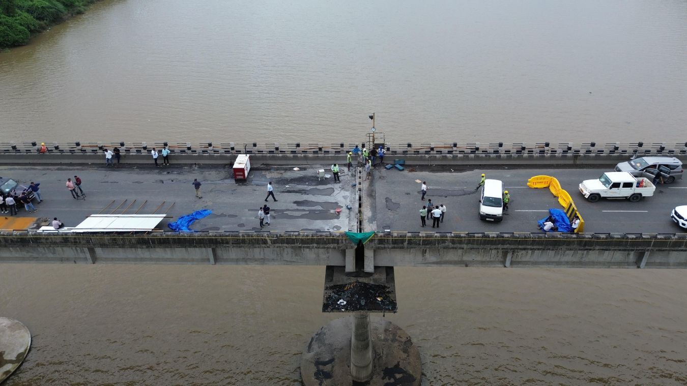 મુખ્યમંત્રી શ્રી ભૂપેન્દ્ર પટેલે વડોદરા જિલ્લાના મુજપુર-ગંભીરા પુલ દુર્ઘટના બાદ રાજ્યના તમામ પુલોની સલામતી ધ્યાને લેતા જાહેરહિતમાં તેની પુનઃ તાત્કાલિક ધોરણે સઘન ચકાસણી કરવાની સૂચના આપી હતી, જેના ભાગરૂપે જિલ્લા કલેક્ટર ડો.સૌરભ પારધીએ કામરેજ તાલુકાના ખોલવડ અને આંબોલીને જોડતા એન.એચ.-૪૮ પર તાપી નદી પરના બ્રિજની મુલાકાત લીધી હતી અને બ્રિજના એક્ષ્પાન્શન જોઈન્ટની સમારકામની કામગીરીનું નિરીક્ષણ કર્યું હતું. બ્રિજ રિપેરિંગની કામગીરીના કારણે બ્રિજ બંધ કરવામાં આવ્યો છે, ત્યારે આ રૂટ પરના ટ્રાફિકને વડોદરા મુંબઈ હાઈવેના કિમ ચાર રસ્તાથી એના સુધીના સેક્શન પર ડાયવર્ટ કરવામાં આવ્યો છે, જે સંદર્ભે નેશનલ હાઈવે ઓથોરિટીના અધિકારીઓ સાથે વાહનવ્યવહાર સરળ બને અને વાહનચાલકોને મુશ્કેલી ન પડે એ બાબતે ચર્ચાવિચારણા કરી જરૂરી સૂચના આપી હતી.