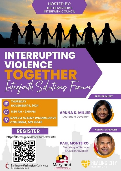 હિંસા વિરુદ્ધ મેરીલેન્ડમાં આંતરધર્મીય બેઠક, લેફ્ટનન્ટ. રાજ્યપાલ અરુણા મિલર ઉપસ્થિત રહેશે.