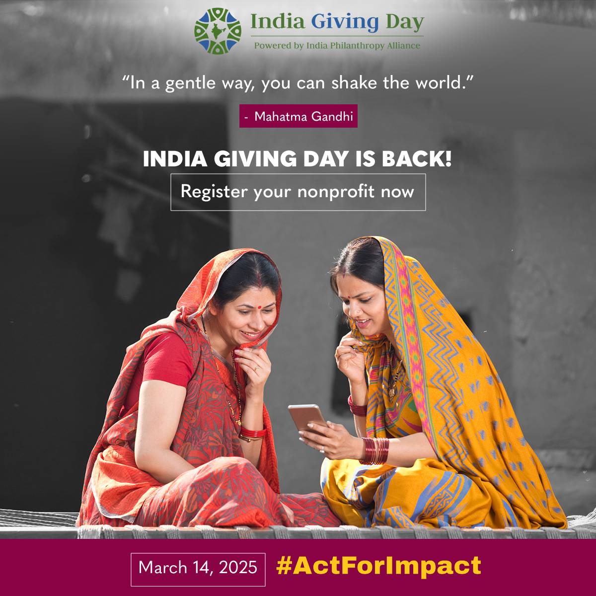 ઇન્ડિયા ગિવિંગ ડેને રૂરલ ઇન્ડિયા સપોર્ટિંગ ટ્રસ્ટ, મેકઆર્થર ફાઉન્ડેશન, બેન્ક ઓફ અમેરિકા, માસ્ટરકાર્ડ અને અન્યનો ટેકો છે. ભારતના વિકાસ પર ધ્યાન કેન્દ્રિત કરતી બિનનફાકારક સંસ્થાઓ 31 ઓક્ટોબર સુધી ઇન્ડિયા ગિવિંગ ડે 2025 માટે નોંધણી કરાવી શકે છે.