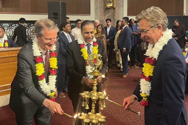 બે ડઝનથી વધુ સાંસદોએ 13 નવેમ્બરે બહુવિધ ભાગીદાર સંગઠનો સાથે બીએપીએસ શ્રી સ્વામિનારાયણ મંદિર દ્વારા આયોજિત વાર્ષિક 'દિવાળી ઓન કેપિટોલ હિલ' ઉજવણીમાં ભારતીય અમેરિકનો સાથે દિવાળીની ઉજવણી કરી હતી.