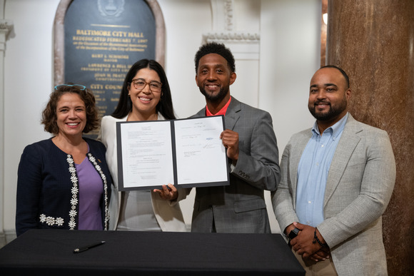 MIMA ને કાયમી બનાવનાર બિલ પર હસ્તાક્ષર કર્યા પછી મેયર હોચુલ અને અન્ય અધિકારીઓ. / Mayor Baltomore.gov/ website