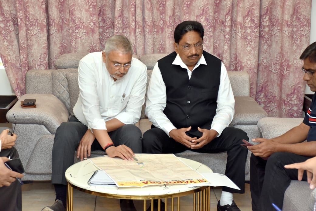 વડોદરામાં છેલ્લા 3 દિવસથી પૂરની પરિસ્થિતી સર્જાઇ છે. ત્યારે આજે રાજ્યના આરોગ્ય મંત્રી ઋષિકેશ પટેલ અને જગદીશ વિશ્વકર્મા વડોદરા દોડી આવ્યા છે. તેમણે આવીને પહેલાં ઉચ્ચ અધિકારીઓ સાથે મિટિંગ યોજી હતી. તેમણે મીડિયા સાથેની વાતચીતમાં જણાવ્યું હતું કે, આગામી 24 કલાકમાં પરિસ્થિતિ કાબુમાં આવશે. આ સાથે જ ફરીથી આ પ્રકારની સ્થિતીનું નિર્માણ ન થાય તે માટે એક્શન પ્લાન પર કામ કરવાની શરૂઆત કરી દેવામાં આવી છે. વિધાનસભાના દંડક શ્રી બાલકૃષ્ણ શુકલ, જિલ્લા કલેક્ટર , મ્યુનિસિપલ કમિશનર સહિત જિલ્લા વહીવટી તંત્ર સાથે સમગ્રતથા પરિસ્થિતિની સમીક્ષા બેઠક યોજાઈ હતી. મંત્રી શ્રી દ્વારા વડોદરા જિલ્લામાં ભારે વરસાદથી અસરગ્રસ્ત વિસ્તારોની રૂબરુ મુલાકાત લઈ જાત નિરીક્ષણ કરવામાં આવ્યું. તેમજ સમગ્ર પરિસ્થિતિ સત્વરે પુર્વવત થાય, ભારે વરસાદની પરિસ્થિતિને પગલે ઓછામાં ઓછી કેઝ્યુલટી સર્જાય તેવા પ્રયાસો હાથ ધરાશે તેવી બાંહેધરી આપી હતી.