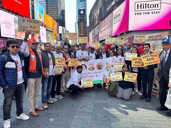 ઓવરસીઝ ફ્રેન્ડ્સ ઓફ બીજેપી -યુએસએના પ્રમુખ ડૉ. અડપા પ્રસાદના નેતૃત્વમાં OFBJPના કાર્યકર્તાઓ દ્વારા રવિવાર 14 એપ્રિલ, 2024ના રોજ ન્યૂયોર્ક શહેરના પ્રતિષ્ઠિત ટાઇમ્સ સ્ક્વેર ખાતે લાઈવ 'મોદી કા પરિવાર' કાર્યક્રમનું આયોજન કર્યું હતું. આ દિવસે, વડા પ્રધાન નરેન્દ્ર મોદીના સેંકડો સમર્થકો તેમની એકતા દર્શાવવા, મોદી પરિવાર સાથેના તેમના સંબંધોની પુષ્ટિ કરવા અને ભારતને એક પ્રચંડ સંદેશ મોકલવા માટે અહીં એકઠા થયા હતા કે મોદી પરિવાર વિશ્વભરમાં ફેલાયેલો છે. ઉત્સાહપૂર્ણ સમર્થકો, ધ્વજ, બેનરો અને શ્રી નરેન્દ્ર મોદીના સમર્થનના સંદેશાઓથી શણગારેલા પ્લેકાર્ડ્સથી વાતાવરણ મોદીમય થઇ ગયું હતું.