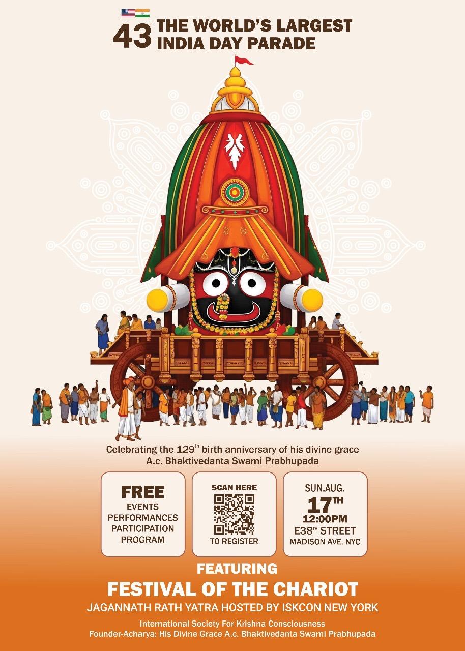 ન્યૂયોર્ક શહેરમાં ફેડરેશન ઓફ ઇન્ડિયન એસોસિએશન્સ (એફઆઈએ) દ્વારા આયોજિત થનારી ઇન્ડિયા ડે પરેડમાં પ્રથમ વખત ઓડિશાના વિશ્વવિખ્યાત રથયાત્રાનો સમાવેશ થશે, જે મેનહટનના હૃદયસ્થાનમાં ભગવાન જગન્નાથના ભવ્ય રથનું દર્શન કરાવશે.
