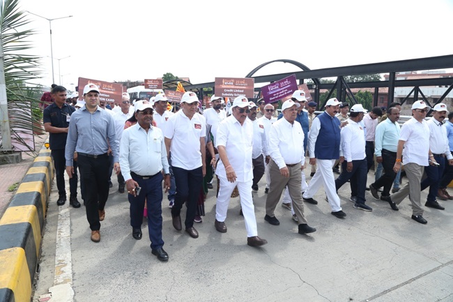 તા.૭થી ૧૫ દરમિયાન રાજ્યવ્યાપી ઉજવાઇ રહેલા વિકાસ સપ્તાહ અંતર્ગત કેન્દ્રીય જળશક્તિ મંત્રીશ્રી સી.આર.પાટીલે સુરતના ઐતિહાસિક ચોકબજાર કિલ્લાથી અડાજણ બસ ડેપો સુધીની ‘વિકાસ પદયાત્રા’ને ફ્લેગ ઓફ આપી પ્રસ્થાન કરાવ્યું હતું. જેમાં વિવિધ બેનરો સાથે શહેરીજનોએ ઉત્સાહભેર ભાગ લીધો હતો.