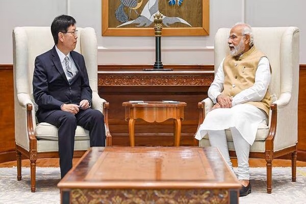 વડાપ્રધાન નરેન્દ્ર મોદીએ નવી દિલ્હીમાં ફોક્સકોનના ચેરમેન યંગ લિયુ સાથે વાત કરી હતી. / PIB