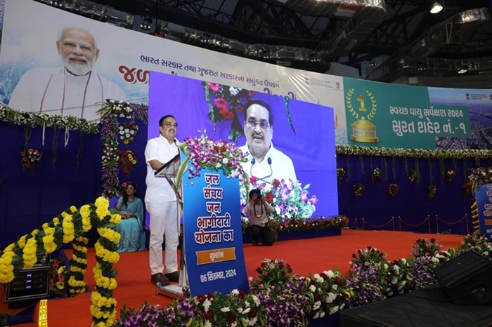 પાણી વિના કોઈ રાજય કે રાષ્ટ્રનો વિકાસ શકય નથી, ત્યારે ગુજરાતે પહેલ કરી સમગ્ર રાજ્યમાં ૨૪૮૦૦ જેટલા વોટર હાર્વેસ્ટીંગ સ્ટ્રકચર બનાવીને ‘વરસાદી જળના સંગ્રહ, જળ સંસાધનોના સંરક્ષણ અને સ્થાનિક જળની જરૂરિયાતોને પૂર્ણ કરવાનો ‘જળ સંચય, જનભાગીદારી' યોજનાનો મુખ્ય ઉદ્દેશ હોવાનું તેમણે જણાવ્યું હતું. સુરત સહિતના દક્ષિણ ગુજરાતના તાપી, ડાંગ, વલસાડ અને નવસારી જિલ્લાઓએ ૧૦,૦૦૦ જેટલા બોરવેલ રિચાર્જના કાર્ય પુર્ણ કરવા બદલ સૌને અભિનંદન પાઠવ્યા હતા.