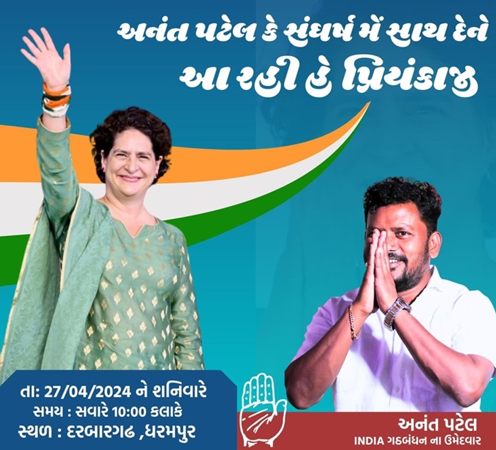 પ્રિયંકા ગાંધીની જાહેરસભાનો કાર્યક્રમ / @AnantPatel1Mla