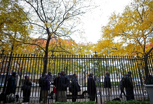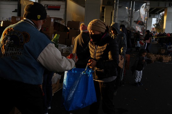 શિકાગો કેથોલિક ચેરિટીઝમાં કટોકટી સહાય કાર્યક્રમમાં મફત રાત્રિભોજન માટે લોકો બહાર લાઇનમાં ઊભા રહે છે. / REUTERS