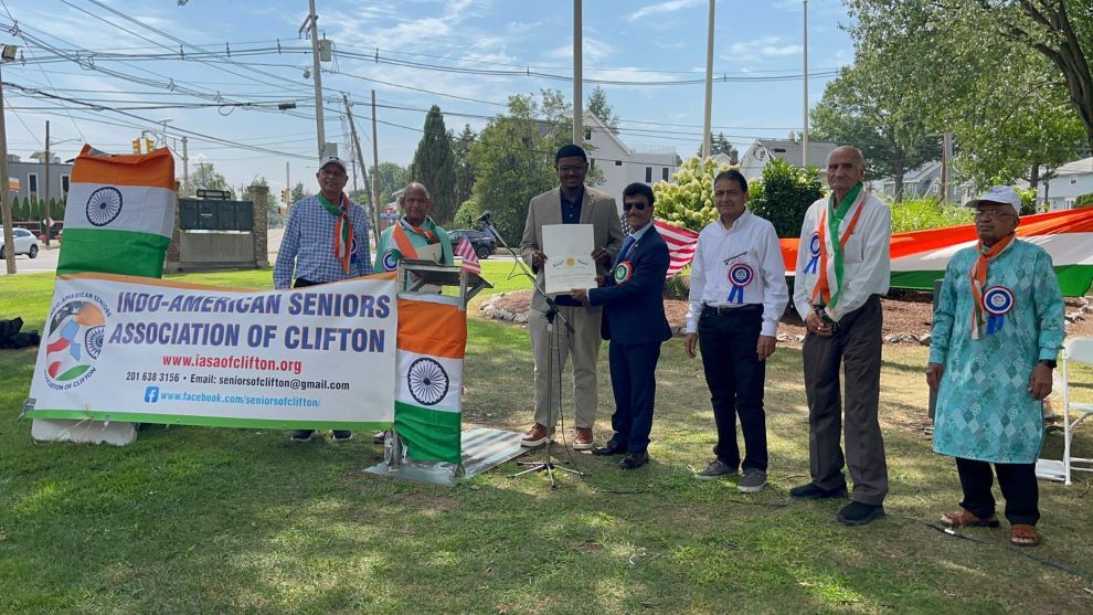 ભારતીય અમેરિકન સિનિયર્સ એસોસિએશન (IASA) ઓફ ક્લિફ્ટને ભારતના 79મા સ્વાતંત્ર્ય દિવસની ઉજવણી માટે 17 ઓગસ્ટના રોજ ક્લિફ્ટન સિટી હોલ ખાતે ભારતીય ત્રિરંગો ફરકાવ્યો.