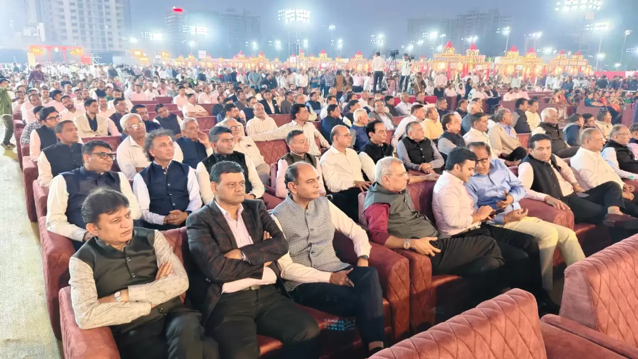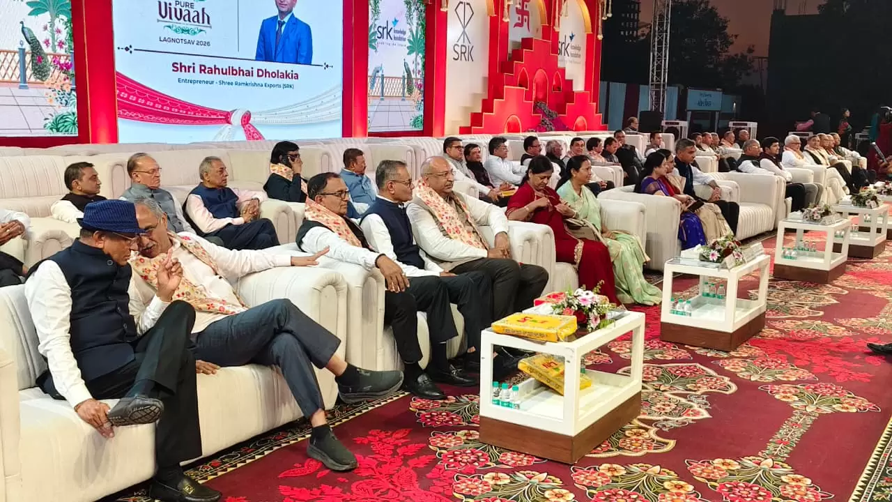 સમારોહના ઉદ્ઘાટક તરીકે કેન્દ્રીય મંત્રીશ્રી સી. આર. પાટીલ અને ભારતના લો અને જસ્ટિસ મિનિસ્ટર શ્રી અર્જુનરામ મેઘવાલે હાજરી આપી હતી. મુખ્ય મહેમાન તરીકે ગુજરાતના નાયબ મુખ્યમંત્રી શ્રી હર્ષ સંઘવી ઉપસ્થિત રહ્યા હતા. વિશેષ મહેમાનોમાં સુરત મહાનગરપાલિકાના મેયરશ્રી દક્ષેશ માવાણી, સુરતના કલેક્ટર શ્રી સૌરભ પારધી, સુરત શહેર પોલીસ કમિશનર શ્રી અનુપમસિંહ ગેહલોત અને ઇન્ડિયન નેવીના કેપ્ટન શ્યામકુમાર સહિત રાજ્ય અને દેશભરના સાંસદો, ધારાસભ્યો તથા ઉચ્ચ અધિકારીઓ ઉપસ્થિત રહી નવદંપતીઓને આશીર્વાદ આપ્યા હતા.
