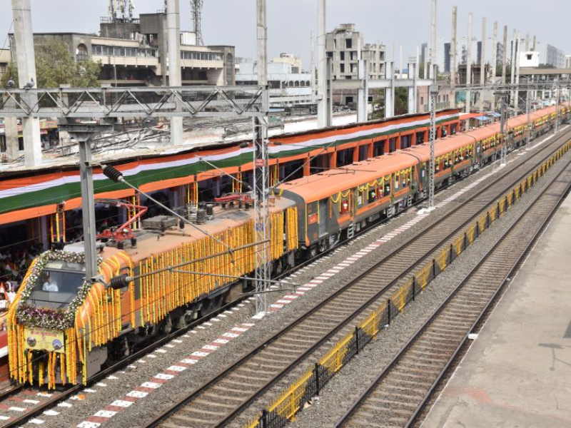 * ફાયરપ્રુફ સીટો, વોટર બોટલ સ્ટેન્ડ, ચાર્જીગ પોઈન્ટ, પેન્ટ્રી કારની સુવિધા