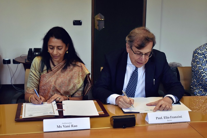આ કરાર પર ઇટાલીમાં ભારતીય રાજદૂત H.E. વાણી રાવ અને મિલાન યુનિવર્સિટીના રેક્ટર એલિયો ફ્રાન્ઝિની, ભારત અને ઇટાલી વચ્ચે શૈક્ષણિક સહયોગને મજબૂત કરવામાં મુખ્ય સિદ્ધિનું પ્રતિનિધિત્વ કરે છે.