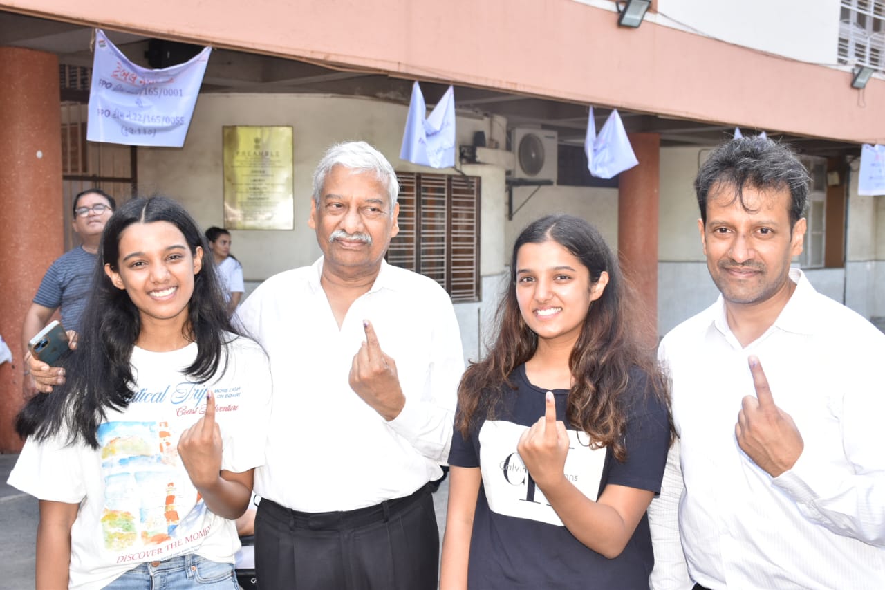 દાદા-પુત્ર તથા બન્ને પૌત્રીઓ સાથે મતદાન / Information Dept. Guj.