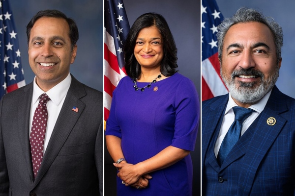 રાજા કૃષ્ણમૂર્તિ, પ્રમીલા જયપાલ અને અમી બેરા / Courtesy photo