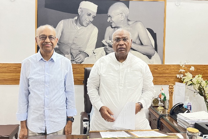 મલ્લિકાર્જુન ખડગે સાથે જ્યોર્જ અબ્રાહમ (ડાબે). / Courtesy Photo