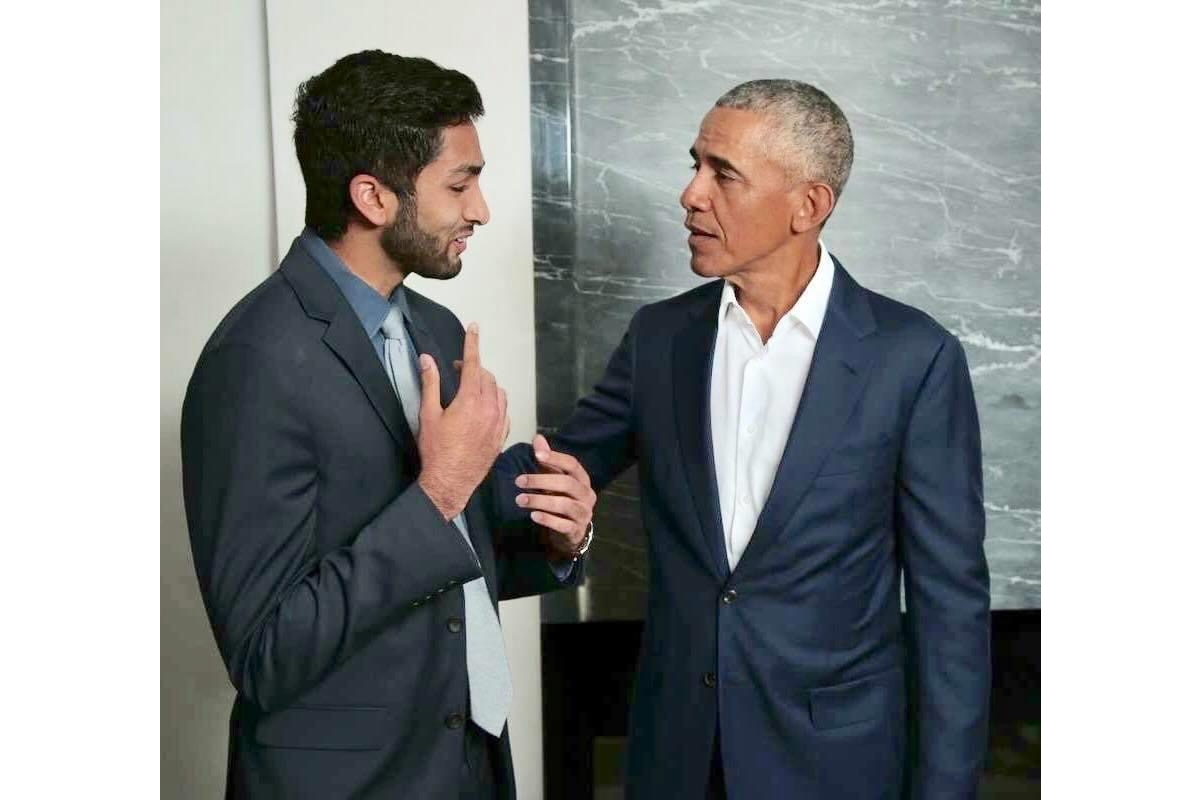 રાજ ભુટોરિયા પૂર્વ પ્રમુખ બરાક ઓબામા સાથે / Courtesy Photo/Ajay Jain Bhutoriaતેઓ કેલિફોર્નિયાના યુવાનોને સંબોધીને કહે છે, "આપણા દેશના ઇતિહાસની આ નિર્ણાયક ક્ષણે, આપણે એક થવું જોઈએ અને જે સાચું છે તેના માટે લડવું જોઈએ. આપણું ભવિષ્ય આપણી સામૂહિક કાર્યવાહી પર નિર્ભર કરે છે, અને સાથે મળીને, આપણે બધા માટે વધુ સારી આવતીકાલને આકાર આપી શકીએ છીએ ".