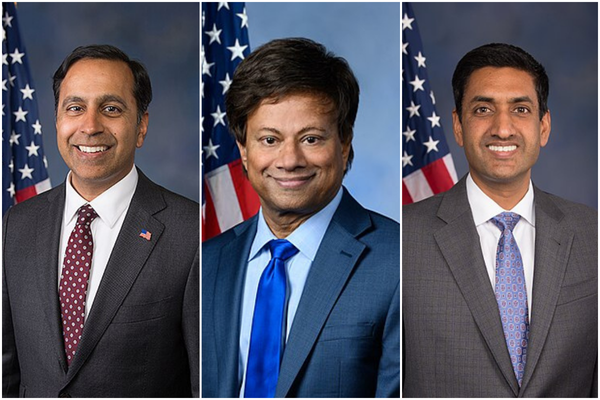 ભારતીય અમેરિકન સાંસદો (L to R) રાજા કૃષ્ણમૂર્તિ, શ્રી થાનેદાર અને રો ખન્ના. / wikipedia