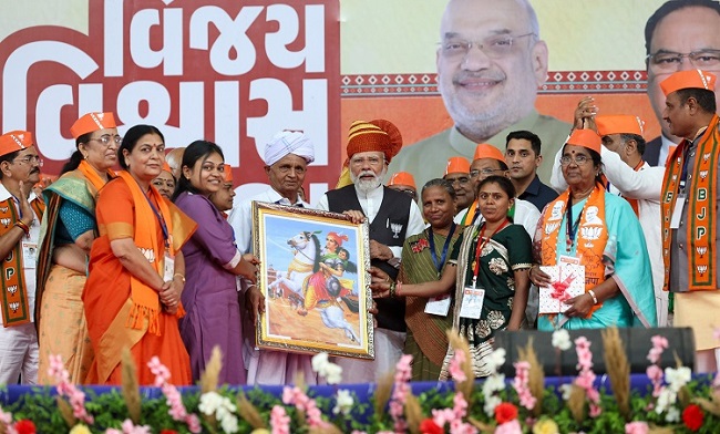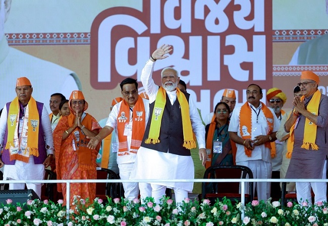 ગુજરાતમાં ચૂંટણી પ્રચાર દરમ્યાન વડાપ્રધાન / X @BJP4Gujarat