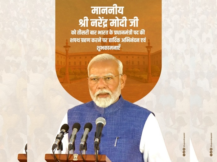 નરેન્દ્ર મોદીને ત્રીજી વાર વડાપ્રધાન બનવા બદલ શુભેચ્છાઓ અપાઈ. / X @Bhupendrapbjp