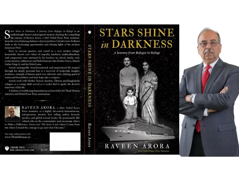 'સ્ટાર્સ શાઇન ઇન ડાર્કનેસ: અ જર્ની ફ્રોમ રેફ્યુજી ટુ રેફ્યુજ' પુસ્તકનું કવર; લેખક રવિન અરોરા / Raveen Arora / raveenarora.com