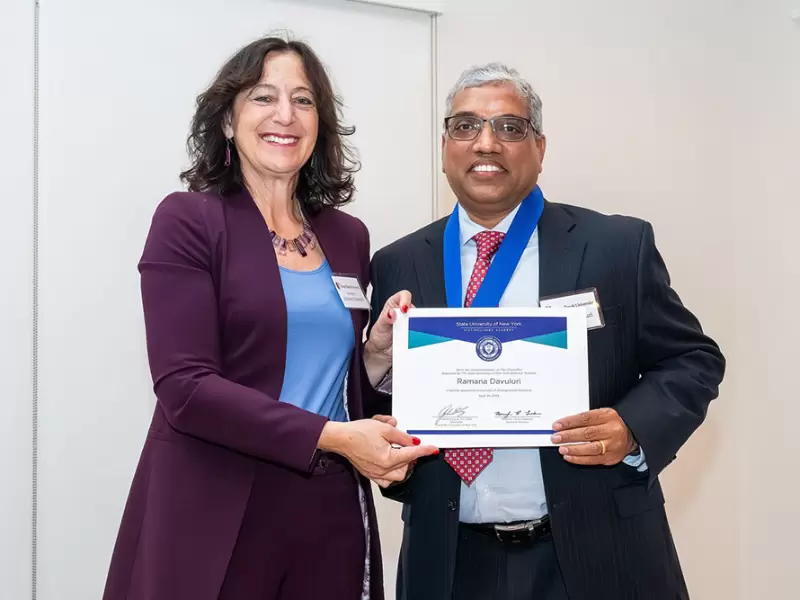 સ્ટોની બ્રૂક યુનિવર્સિટીના પ્રોફેસર રમણા દાવુલુરીને 2025 માટે સ્ટેટ યુનિવર્સિટી ઓફ ન્યૂ યોર્ક (SUNY) બોર્ડ ઓફ ટ્રસ્ટીઝ દ્વારા SUNY વિશિષ્ટ ફેકલ્ટીના રેન્કમાં ઉન્નત કરવામાં આવ્યા છે.