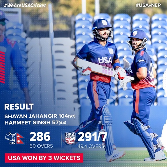 નેપાળને 3 વિકેટે હરાવ્યું / X @usacricket