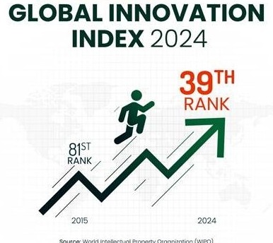 लगभग एक दशक में भारत ने ग्लोबल इनोवेशन इंडेक्स में जबरदस्त प्रगति की है। 2015 में भारत 81वें स्थान पर था, जो 2024 में बढ़कर 39वें स्थान पर पहुंच गया है। यह उन्नति विभिन्न क्षेत्रों में इनोवेशन को प्रोत्साहित करने में केंद्रित दृष्टिकोण को दर्शाती है जिसे सरकार से मजबूत समर्थन मिल रहा है।