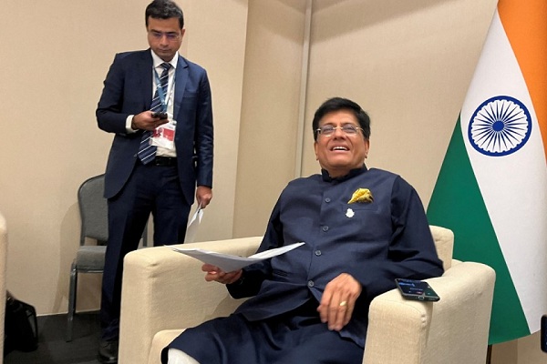 भारत के व्यापार मंत्री पीयूष गोयल 29 फरवरी, 2024 को अबू धाबी, संयुक्त अरब अमीरात में डब्ल्यूटीओ की बैठक में पत्रकारों को जानकारी देने की तैयारी करते हुए। / Reuters/Emma Farge/File Photo