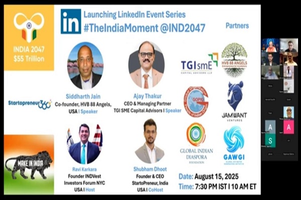INDVest इन्वेस्टर्स फोरम NYC और स्टार्टोप्रेन्योर ने 15 अगस्त को एक वेबिनार का आयोजन किया। वेबिनार श्रृंखला के उद्घाटन समारोह का शीर्षक था 'द इंडिया मोमेंट @IND2047 लिंक्डइन इवेंट सीरीज।
