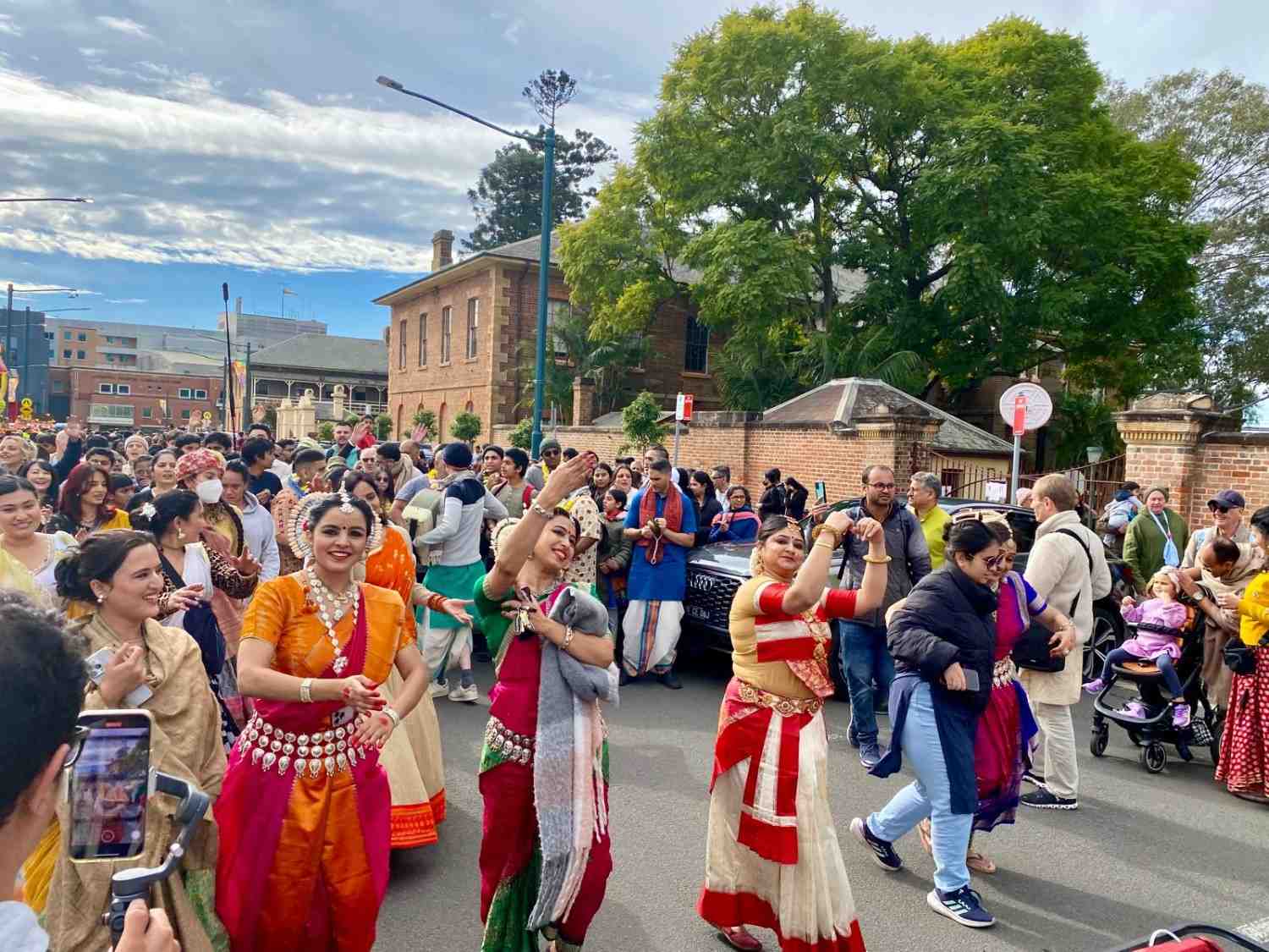इस्कॉन मंदिर की भजन मण्डली ने प्रभु के नाम का गुणगान किया। पारम्परिक भारतीय परिधानों में महिलाओं ने रथ के आगे नृत्य किया। इस दृश्य को देखकर ऐसा आभास हुआ कि साक्षात वृन्दावन की गोपियां नाच रही हों। सिडनी में जमीं से लेकर आकाश तक कण-कण में भगवान जगन्नाथ की उपस्थिति का आभास हो रहा था।