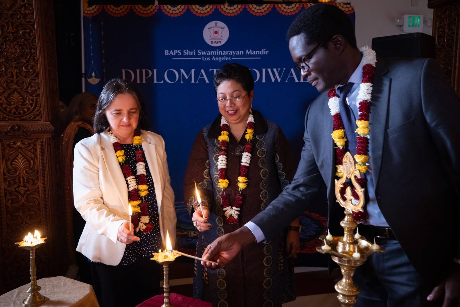 लॉस एंजिल्स के चीनो हिल्स में बीएपीएस श्री स्वामीनारायण मंदिर की तरफ से पहली बार राजनयिक दिवाली महोत्सव मनाया गया। दिवाली का जश्न मनाने और अंतरराष्ट्रीय संबंधों को बढ़ावा देने के उद्देश्य से आयोजित समारोह में 15 से अधिक देशों के राजनयिक मिशन और संगठन शामिल हुए।