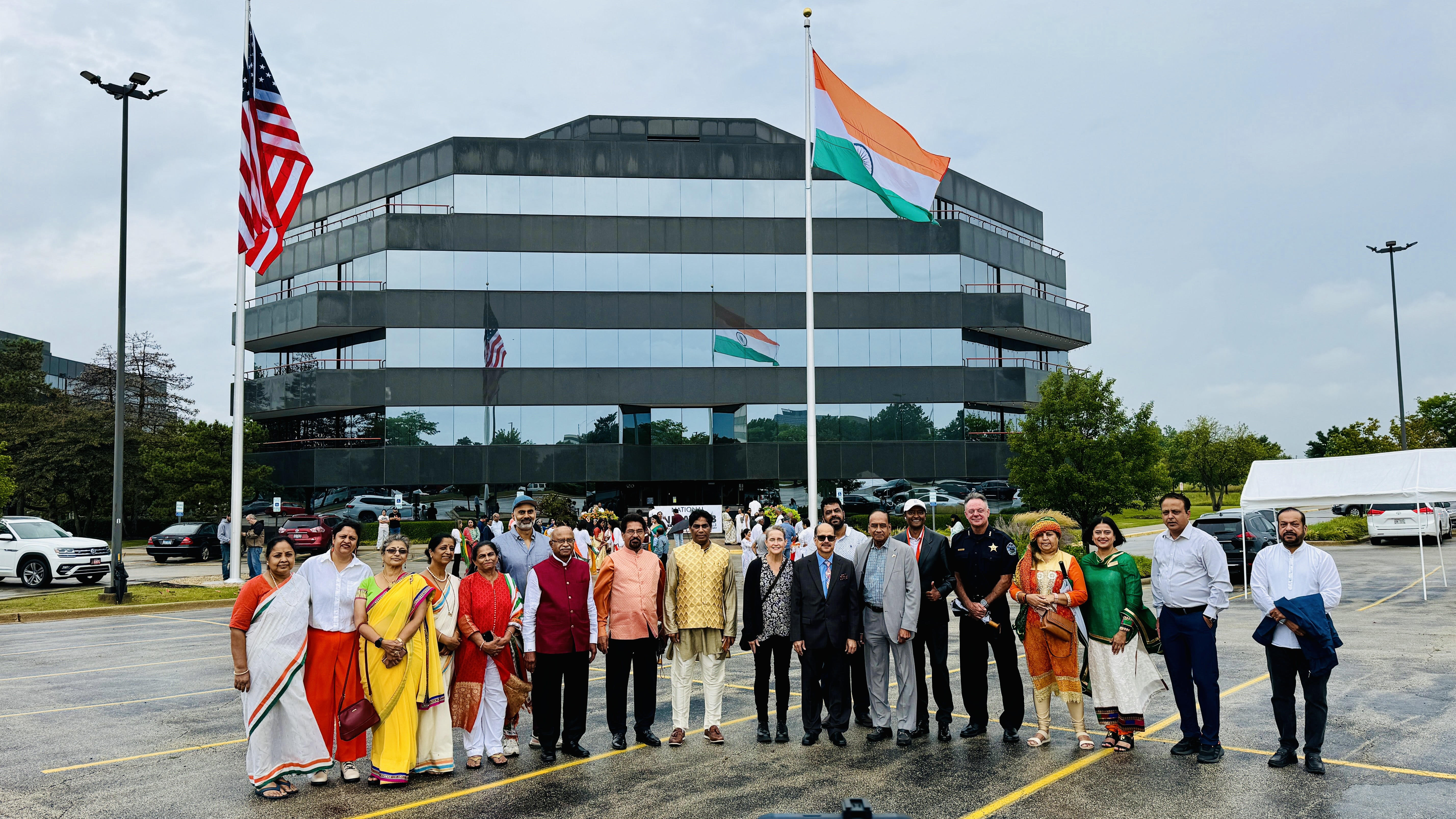 शनिवार 15 अगस्त को भारत के स्वतंत्रता दिवस पर पुलिस प्रमुख बिल वोल्फ ने राज्य प्रतिनिधि मिशेल मसमन के साथ अमेरिकी ध्वज फहराया। राजदूत डॉ. औसफ सैयद और हरीश कोलासानी ने INDIA HUB के संस्थापक सदस्यों हेमा रचमाले, के.के. रेड्डी, ऊषा भास्कर, सलील मिश्रा, दीप्ति कार्लापुडी, अनूप पटेल, ओम ढींगरा और अन्य सामुदायिक नेताओं के साथ भारतीय ध्वज फहराया। ऐतिहासिक अनुपातों वाले दो ध्वजस्तंभों पर इन ऊंचे झंडों को फहराना, हरीश कोलासानी के भावपूर्ण दृष्टिकोण द्वारा रेखांकित किए गए हफ्तों की मेहनत का परिणाम था।