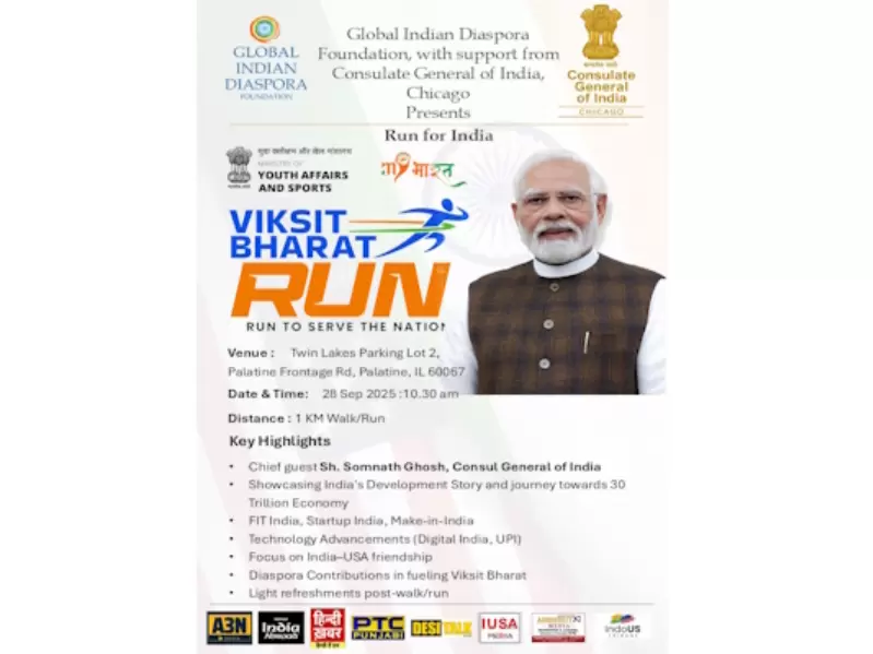 शिकागो स्थित इलिनॉय में खास सामुदायिक कार्यक्रम आयोजित किया गया। इस कार्यक्रमको ग्लोबल इंडियन डायस्पोरा फ़ाउंडेशन, शिकागो स्थित भारतीय महावाणिज्य दूतावास ने लीड किया। कार्यक्रम रविवार, 28 सितंबर, 2025 को सुबह 10:30 बजे विकसित भारत रन 2025 का आयोजन करेगा। यह सामुदायिक फ़िटनेस कार्यक्रम ट्विन लेक्स पार्किंग लॉट 2, फ्रंटेज रोड, पैलेटाइन, इलिनॉय 60067 में आयोजित किया जाएगा, जहाँ परिवार, फ़िटनेस प्रेमी और समुदाय के सदस्य स्वास्थ्य, एकता और 2047 तक एक विकसित राष्ट्र के भारत के दृष्टिकोण का जश्न मनाने के लिए एक साथ आए।