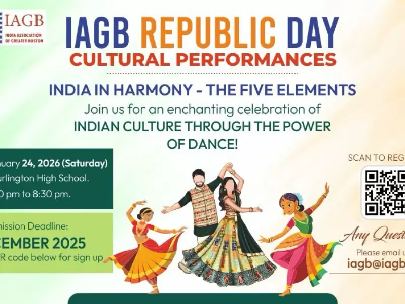 ग्रेटर बॉस्टन में रहने वाले भारतीय समुदाय के लिए एक खास अवसर आने वाला है। इंडिया एसोसिएशन ऑफ ग्रेटर बॉस्टन (IAGB) ने अपने रिपब्लिक डे मेला 2026 की घोषणा कर दी है। यह पूरा दिन चलने वाला कार्यक्रम भारतीय संस्कृति, कला और सामुदायिक एकता को समर्पित होगा। इस बार समारोह की थीम ‘इंडिया इन हार्मनी - द फाइव एलिमेंट्स’ रखी गई है जिसे नृत्य और सांस्कृतिक प्रस्तुतियों के माध्यम से दिखाया जाएगा।