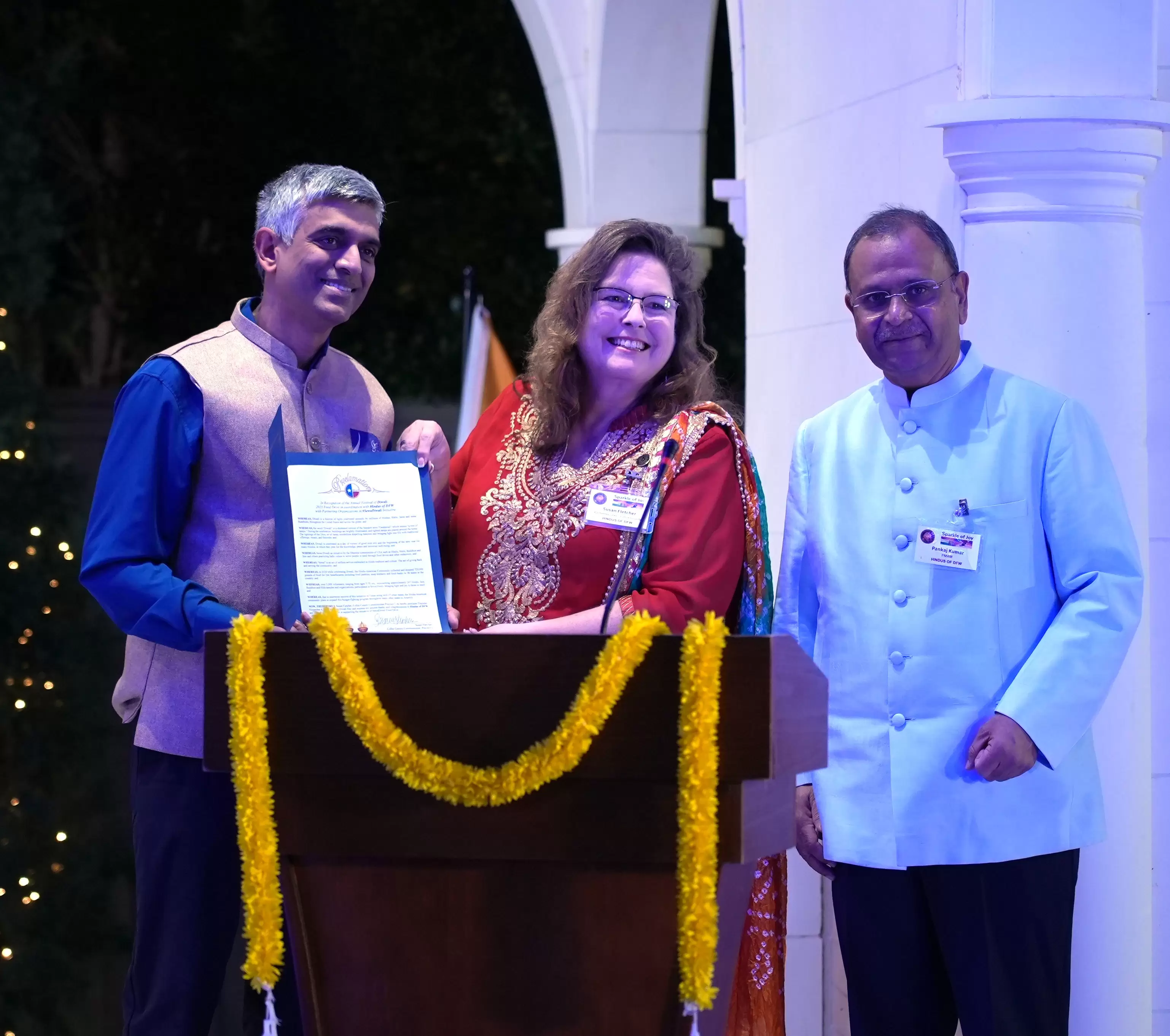 पूर्व भारतीय विदेश मंत्री मीनाक्षी लेखी ने सभा को संबोधित किया और भारत और संयुक्त राज्य अमेरिका को जोड़ने वाले साझा लोकतांत्रिक आदर्शों और मूल्यों, जैसे योग्यता, नवाचार और उद्यमिता, पर विचार व्यक्त किए।