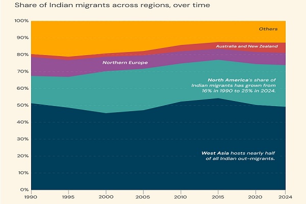 दुनिया भर में सबसे अधिक बाहर जाने वाले भारतीयों की मेजबानी करने वाले क्षेत्र। / UN Department of Economic and Social Affrairs