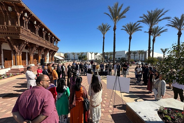समुदाय और धार्मिक नेता चीनो हिल्स स्थित बीएपीएस श्री स्वामीनारायण मंदिर में एकता प्रार्थना सभा के लिए एकत्र हुए। / BAPS