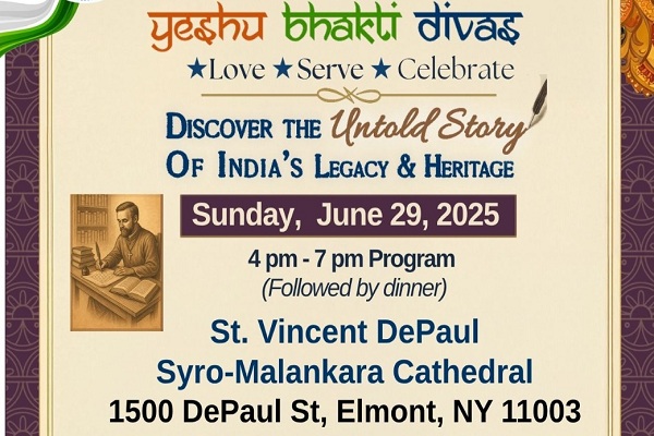 इस वर्ष ट्राई-स्टेट क्षेत्र में इंडियन क्रिश्चियन डे (ICD 2025) रविवार, 29 जून को शाम 4 बजे सेंट विंसेंट डेपॉल सिरो-मलंकरा कैथेड्रल (1500 डी पॉल सेंट, एलमोंट, एन.वाई. 11003) में मनाया जाएगा।