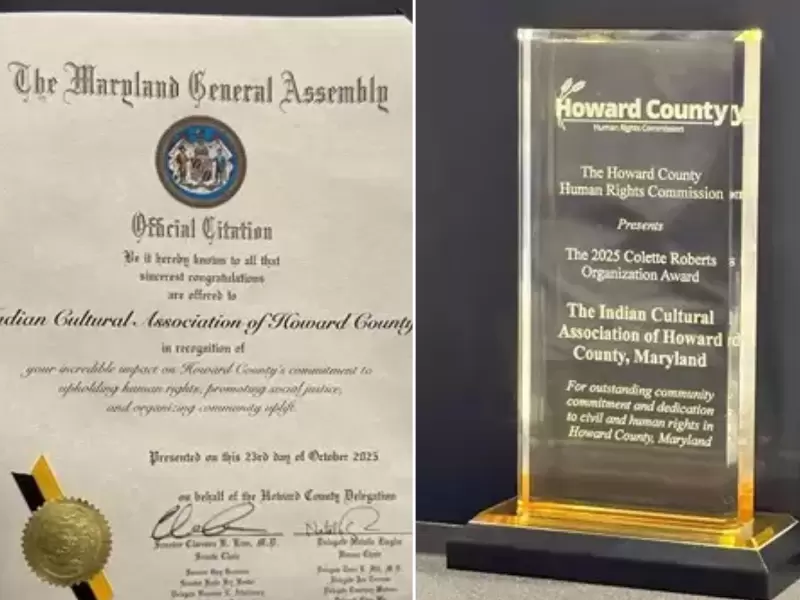 अमेरिका के मैरीलैंड में भारतीय सांस्कृतिक संघ (Indian Cultural Association - ICA) को हावर्ड काउंटी ह्यूमन राइट्स कमीशन और ऑफिस ऑफ ह्यूमन राइट्स एंड इक्विटी की ओर से 2025 का ह्यूमन राइट्स अवॉर्ड प्रदान किया गया है। यह सम्मान 23 अक्टूबर को आयोजित वार्षिक समारोह में दिया गया, जिसमें मैरीलैंड जनरल असेंबली की ओर से आधिकारिक प्रशस्ति-पत्र भी शामिल था।
