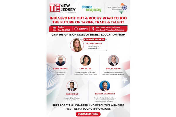 न्यू जर्सी के प्रिंसटन में भारत स्वतंत्रता दिवस का आयोजन न्यू जर्सी-भारत आयोग और ChooseNJ के सहयोग से किया जा रहा है। इस कार्यक्रम का उद्देश्य प्रभावशाली नेताओं, युवा नवप्रवर्तकों और चार्टर सदस्यों को जोड़ने के लिए एक मंच तैयार करना है। समारोह की थीम अपने आप में खास है। जिसमें दिग्गज इनोवेटर्स और कई क्षेत्रों के एक्सपर्ट्स शामिल हो रहे हैं।