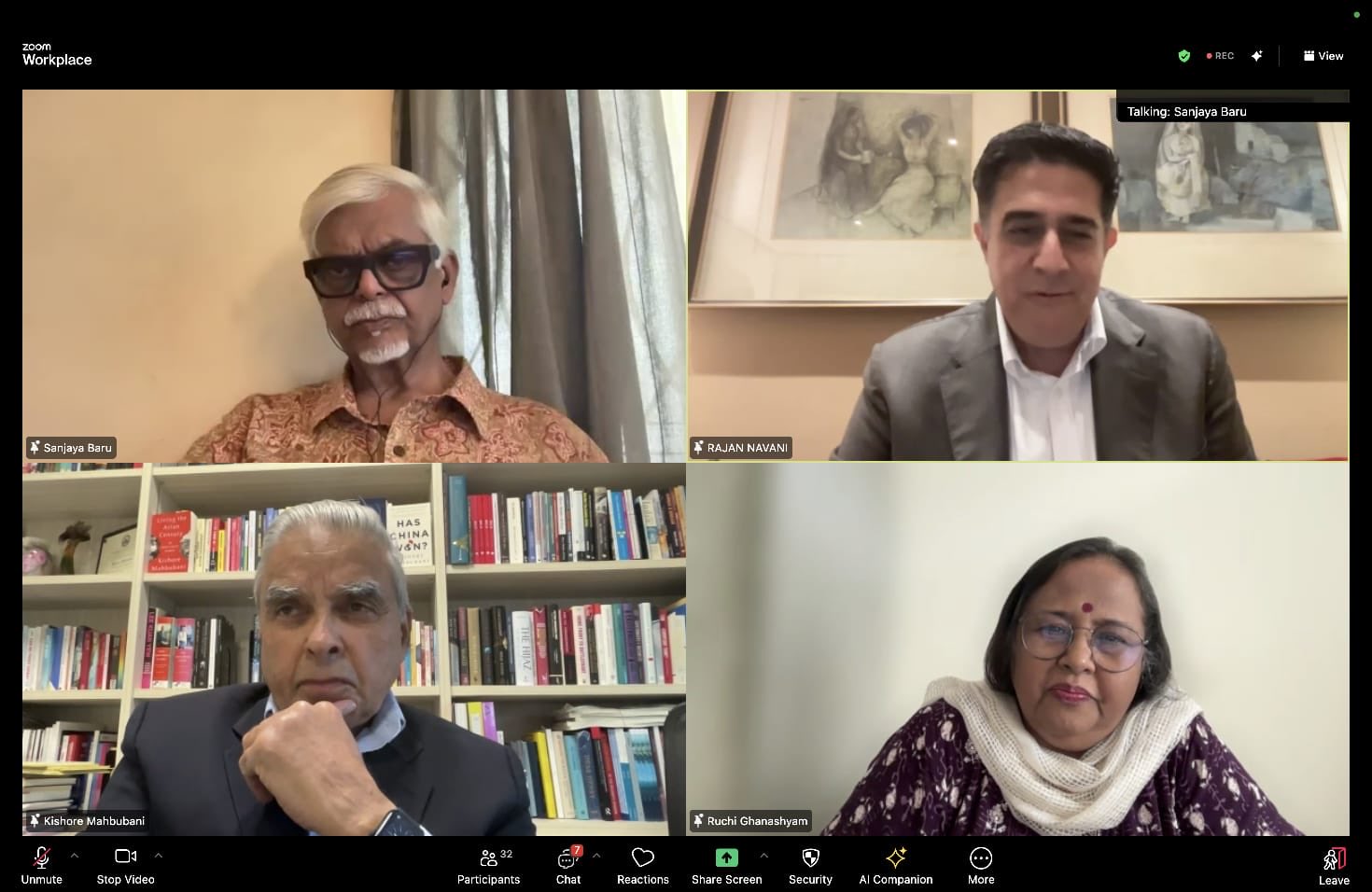 पूर्व भारतीय राजनयिक रुचि घनश्याम ने 29 मई को आयोजित इंडियास्पोरा की वर्चुअल चर्चा में भाग लिया। इस चर्चा का विषय था "एशिया की नई रणनीति: अमेरिका फर्स्ट की नीतियों से उत्पन्न नई वास्तविकताएं"। इस संवाद में किशोर महबूबानी और बरुगरु सुरेश जैसे प्रतिष्ठित वक्ता भी शामिल थे।